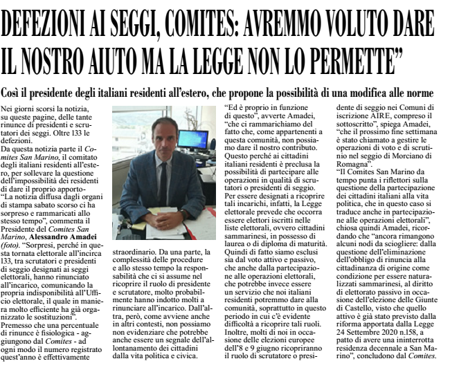 DEFEZIONI AI SEGGI, COMITES: AVREMMO VOLUTO DARE IL NOSTRO AIUTO