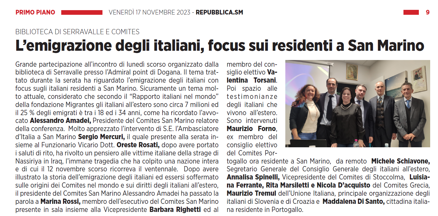 “Italiani all’estero” tema dell’incontro di lunedì 13 novembre presso la biblioteca di Serravalle
