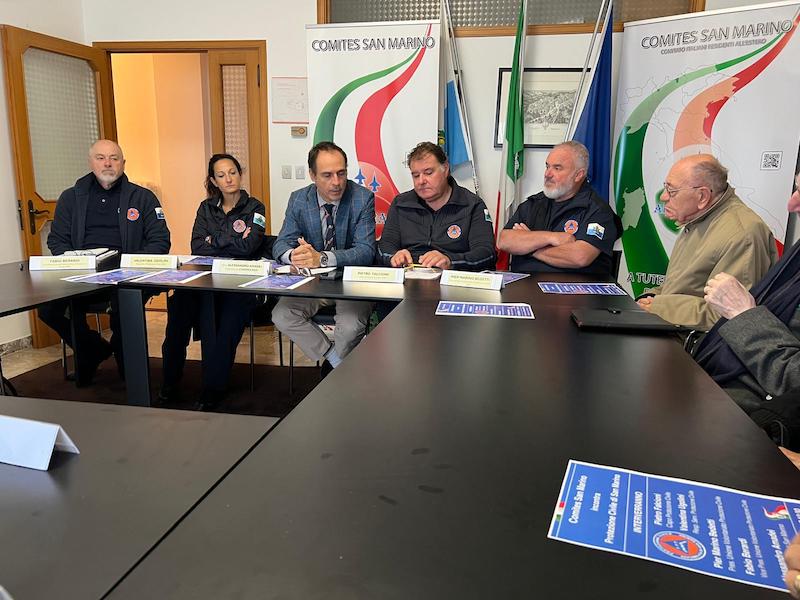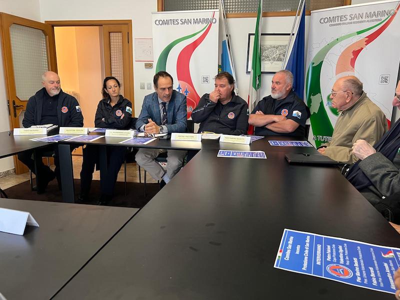 Giovedì scorso Pietro Falcioni e Valentina Ugolini rispettivamente Capo e Vice Capo della Protezione Civile di San Marino e Pier Marino Bedetti e Fabio Berardi Presidente e Vicepresidente dell’Unione Volontariato della Protezione Civile di San Marino sono stati ospiti del Comites San Marino presso la sede del comitato sita in Via Maestri Comacini a San Marino Città.